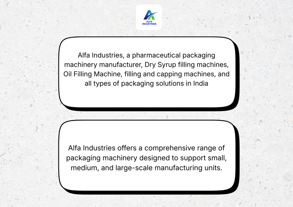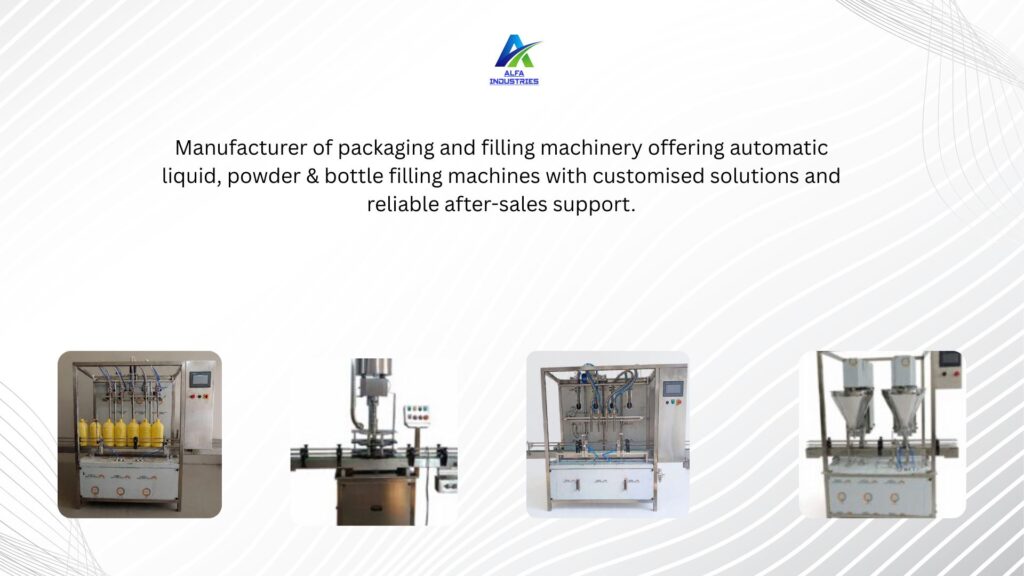 Looking for reliable packaging and filling machinery? Alfa Industries offers advanced automatic liquid, powder, and bottle filling machines designed for accuracy, durability, and high efficiency. Our customised packaging solutions support food, pharmaceutical, cosmetic, chemical, and FMCG industries. Contact Alfa Industries today for cost-effective automation solutions backed by quality manufacturing and professional after-sales service.